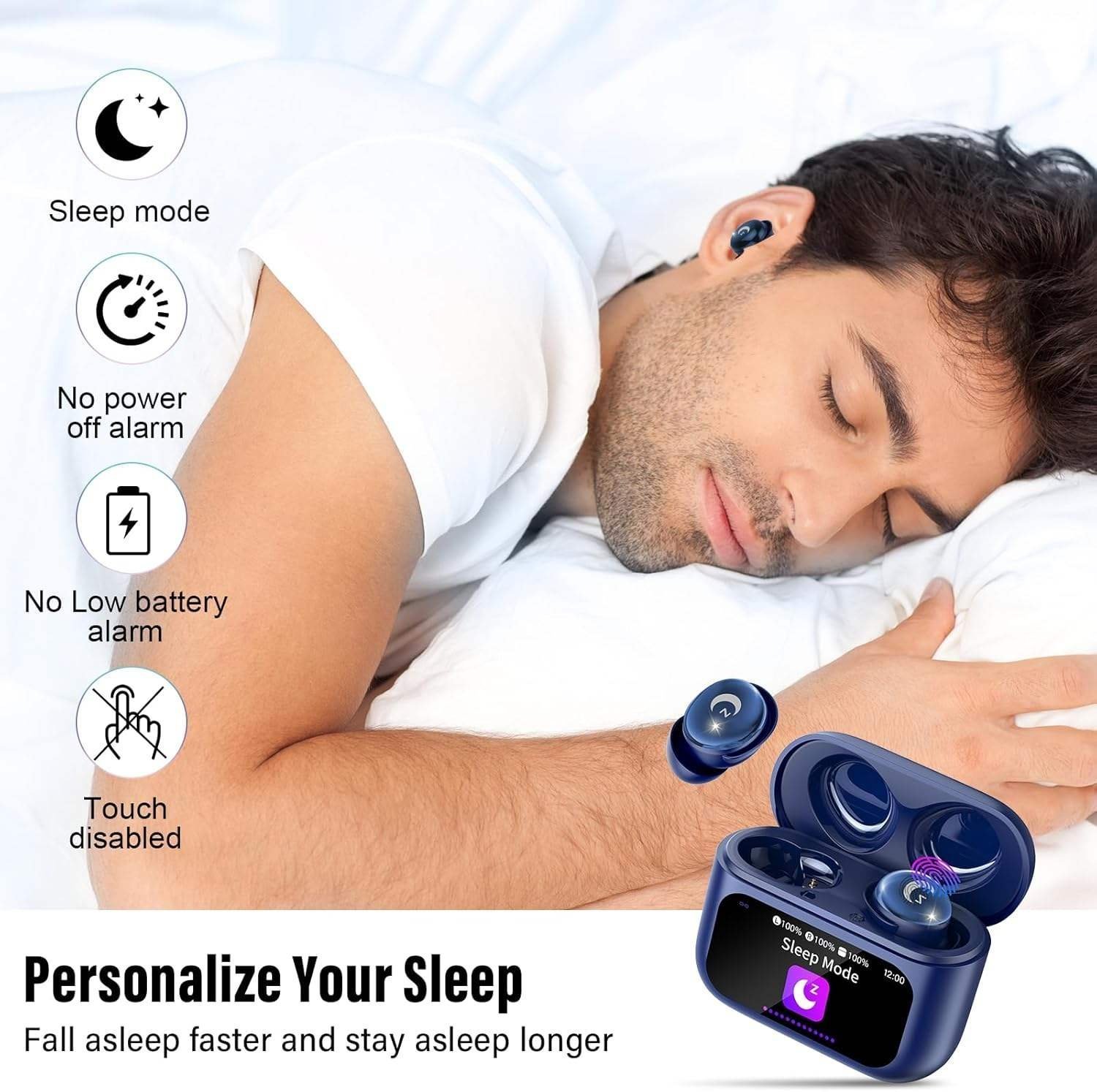 Wireless Sleep Earbuds – Lightweight, comfortable earbuds designed for side sleepers and long listening sessions. Bluetooth-enabled with stable connection, noise reduction, long battery life, and portable charging case for day or night use.